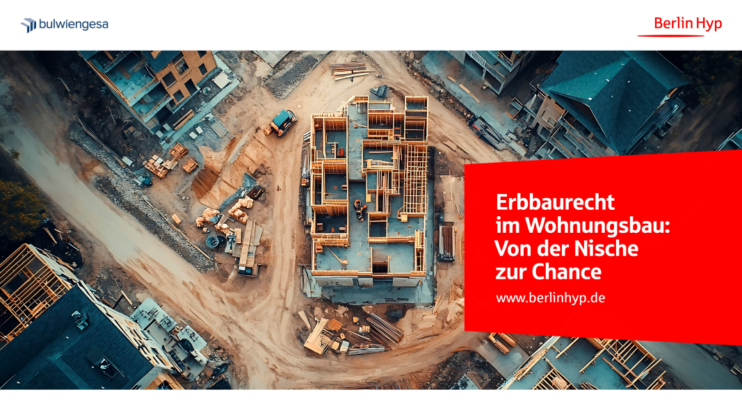 Immer mehr Städte und Kirchen denken um: Statt eines klassischen Grundstücksverkaufs nutzen sie bei der Vergabe von Bauland nun mehr und mehr das Erbbaurecht. Warum sie das tun, für wen sich die Anwendung des Erbbaurechts lohnt und ob das Verfahren den dringend benötigten Bau von Wohnraum unterstützen kann, beleuchtet die neueste Kurzstudie von bulwiengesa im Auftrag der Berlin Hyp AG.