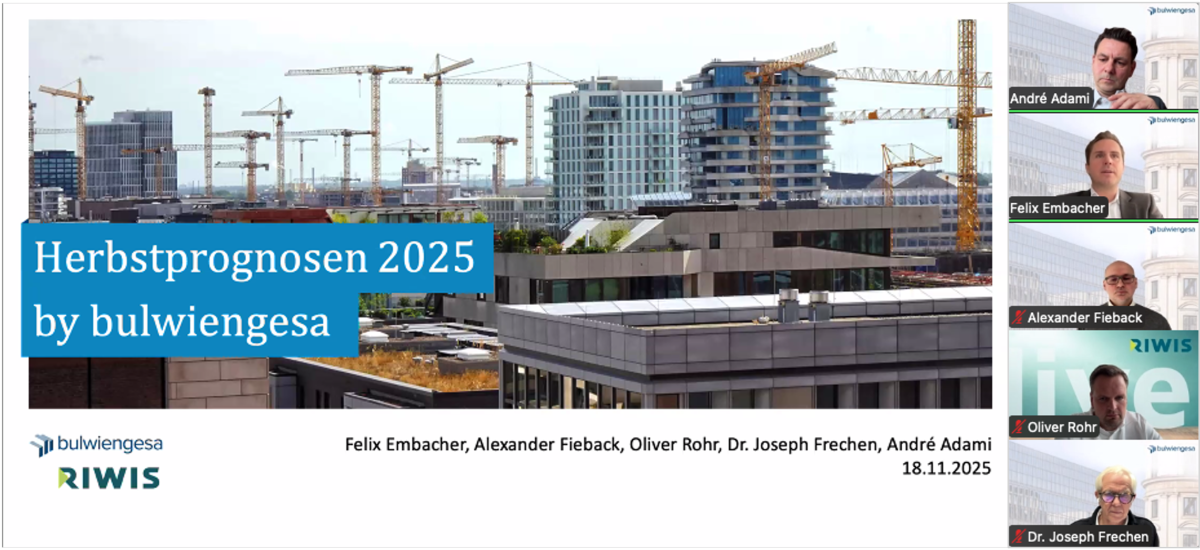 Zum zweiten Mal in diesem Jahr hat bulwiengesa umfassende Prognosen zur Entwicklung der Immobilienmärkte in Deutschland veröffentlicht - basierend auf volkswirtschaftlichen Rahmenbedingungen und Analysen aus der hauseigenen Immobiliendatenbank RIWIS. Die aktuellen Herbstprognosen wurden am 18. November 2025 in einem Webinar vorgestelltLight Industrial Markt erholt sich deutlich