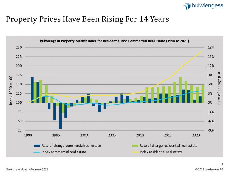 The chart of the month shows impressively: even the corona-induced ups and downs of the economy for the past two years have only led to partially falling prices. In 2021, the plus in the residential segment in particular has increased once again.