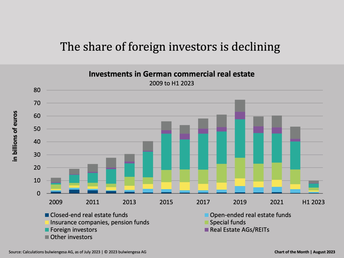 Against expectations, there has been no change in the restraint shown by foreign investors. At only around 32%, their share of the commercial real estate investment market in the first half of 2023 was significantly lower than the average for the past ten years. But challenging times also bring opportunities
